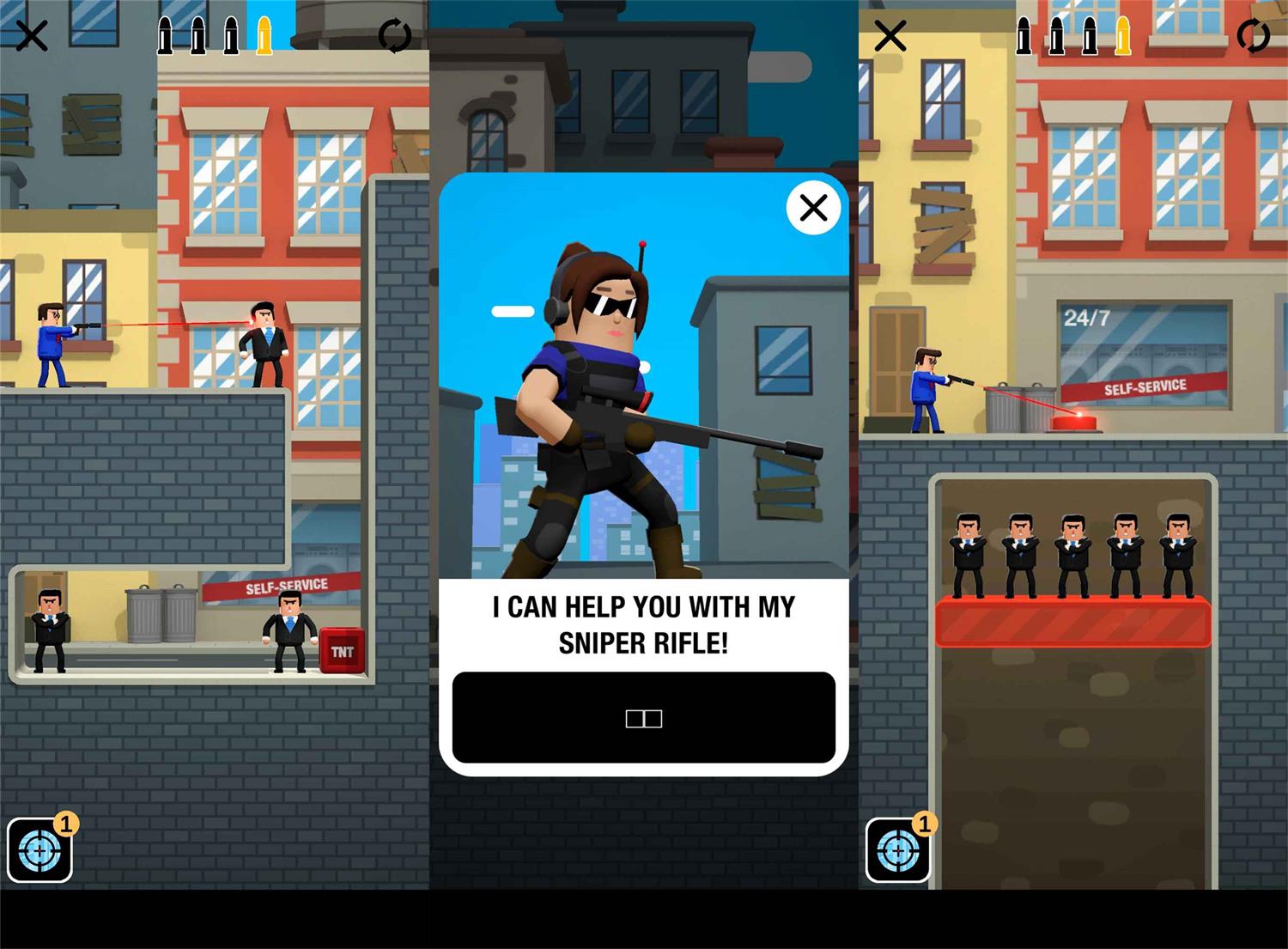 子弹特工3D一款3D射击闯关游戏。简单明了的游戏见面,各种新奇的关卡,神奇的子弹碰撞轨迹,让你每一关都思考如何一发入魂,创出三星完美关卡,已去除广告。
